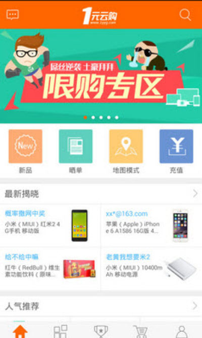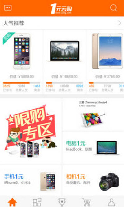 一元云购是一个新的网络购物模式,在这里所有的商品都是等价的,且种类都非常的齐全,让购物变得异常简单,带你体验绝佳的购物享受!