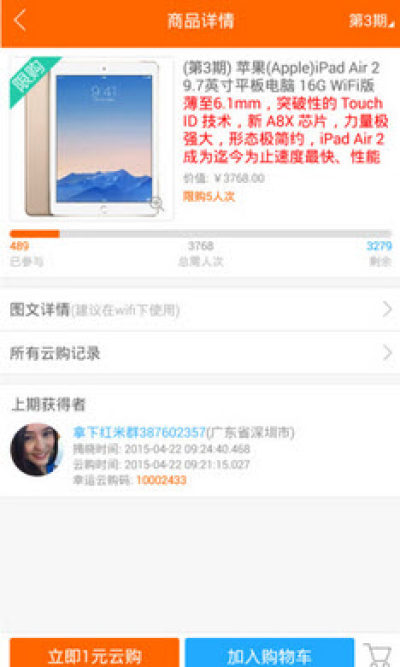 2、限购专区的每个商品每个帐号参与人次设置上限,揭晓规则不变