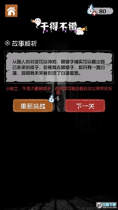 7、每个故事贴心的给大家准备了“提示”,如果还是不明白,可以通过将故事分享给好友的方式来“查看答案”,让一份“恐极”变成两份“恐极”