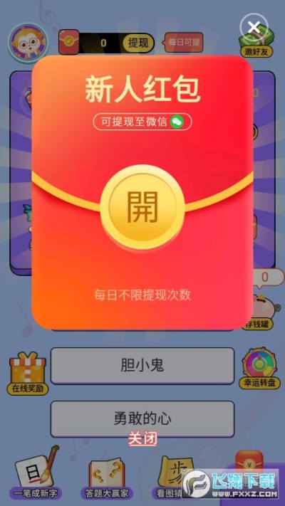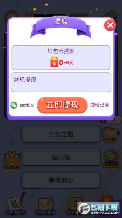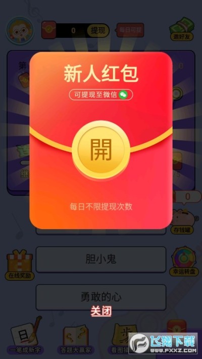 2、休闲娱乐风格,猜谜app,答对赢红包,一起开心听歌。