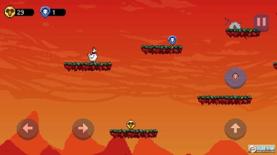 如果不小心被楼顶,或者钉子板碰到而失去生命,可以通过向下跳到安全地带获得一格的生命值,看大家的运气和技巧了。