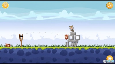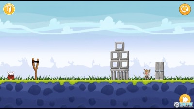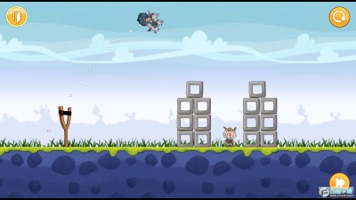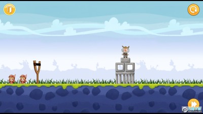 2、游戏操作非常简单。你需要拉左边的弹弓,然后攻击右边的娃娃。后面有障碍物。