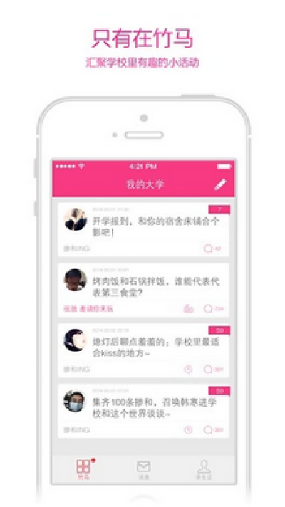所以,竹马来了!我们寻找校园里的最独特的你,邀请有想法有创造、有自己的坚持、敢于挑战的你,一起来做这个社区的共建者。