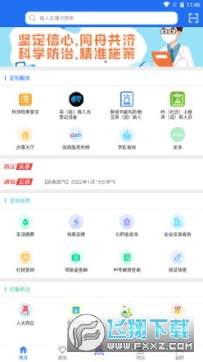可以根据用户定制服务专区,在首页中可以定制专属的服务;