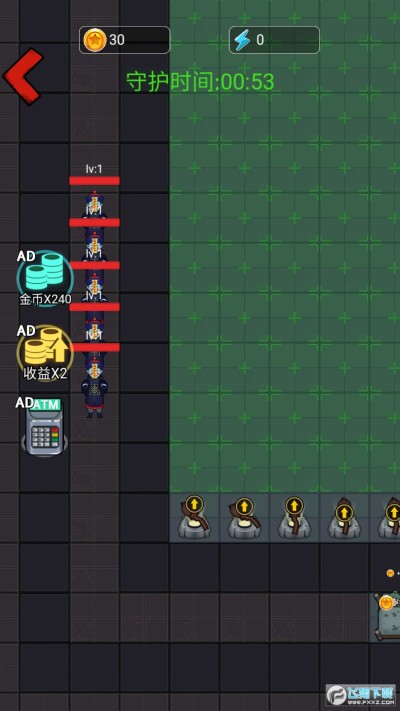 1.不断的抵抗许多恶鬼们的进攻,并不断的布置更多更好的炮台,打造合理的阵容闯关。