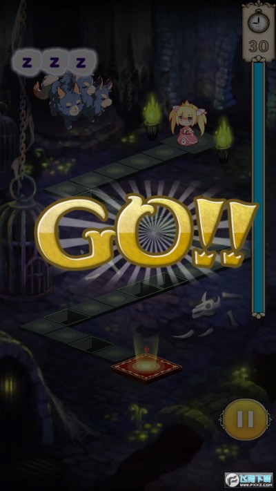 游戏操作更是简单,点击屏幕一下就是移动,点击两下就是跳跃,如果遇到了障碍物,或是掉进洞里则会算一次失误,3次失误则会被巡逻的小怪发现,在30秒的时间内,请抓紧时间逃出这里吧。