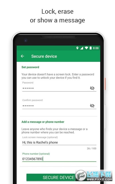 清空或锁定设备,并在锁定屏幕上显示自定义消息和联系电话号码