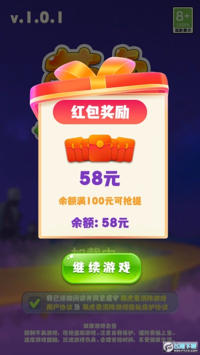 萌虎爱消除是游戏乐天堂新出的小游戏,新人有机会看一个视频拿0.3红包。我刚才测试的第一个0.3红包居然也不是必能提的,有点郁闷啊。提醒,游戏乐天堂的红包都不是必能提的,介意的忽略吧。更新:据两个赚友反馈新人0.3红包都没成功,现在估计是没那么大方了。玩法和开心糖果猫类似,简单消除,后续过关有点难。新人可以去试试第一个0.3小红包能不能提现成功,我的不行。