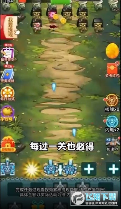 坦克灭僵尸红包版是一款通过合成武器打僵尸获得红包奖励的休闲塔防小游戏。合成两个一样的武器升级成更高级的炮台,抵御一波又一波的僵尸攻击即可获得超多现金奖励!无门槛提现秒到账!感兴趣的小伙伴们快来下载游戏试试吧!