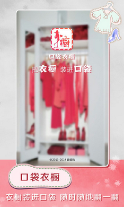 口袋衣橱是爱美丽女生必备的淘宝利器,每天数万件单品推荐,每一件都经过时尚达人精心挑选,看到就可以买到!时尚女生逛淘宝必备应用,让你变得更美丽。不仅能够随时随地享受手机专享折扣优惠,掌握最前沿的时尚潮流,还能搜罗购买到你最最心水的甜美单品,做最美丽的自己!
