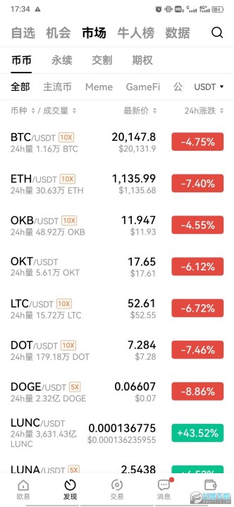 3.现货交易页现切换、定期、永续、交割、期权、闪兑及策略,K线页增加“更多交易”栏目,增加业务线曝光。