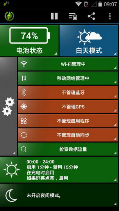 电池救星Green Power是款安卓平台的电池保护程序,能够有效的节省你的电池电量并延长电池的使用寿命。 这款软件能够为你带来额外的一些电池使用时间。而且它不需要像其他的那些电池辅助软件那样需要定期手动进行操作一番,这款软件全自动的运行。当你对软件进行配置完成后,它就能够运行了,它通过巧妙的管理你的无线网络和移动数据:当你不需要的时候就关闭它们,当你要使用的时候就会自动开启,尽量减少对你的操作体验的影响。