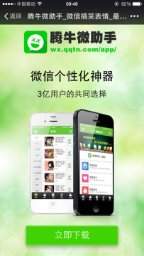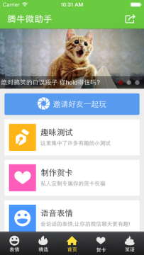 腾牛微助手-微信个性化神器是由腾牛网推出的一款玩微信辅助软件,通过使用腾牛微助手APP,用户可以免费畅玩:个性语音表情,爆笑糗事笑话,精选经典美文,私人贺卡定制。腾牛微助手每日更新海量素材,让您在朋友圈轻松分享最新热门的语音表情、祝福贺卡、爆笑笑话以及趣味测试,还有贴心精选睡前读物,更重要的是,腾牛微助手IOS版无广告、不收费,是您玩转微信的必备聊天助手。