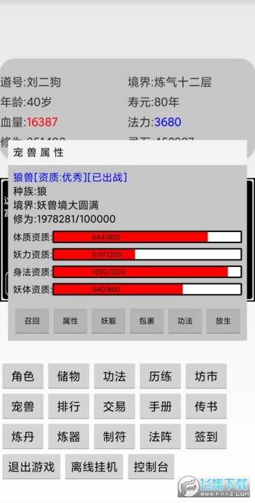 各位新老道友你们好,《挂机修仙传》是一款纯文字的休闲流小游戏,你将扮演一名穿越者展开你的修仙之旅,游戏目前无氪金功能,弱联机属性(可以互相交易)。可以在安卓手机以及模拟器(不开启root权限)上运行。正式服的道友会在道号后显示(正式服)。