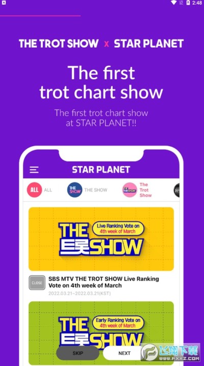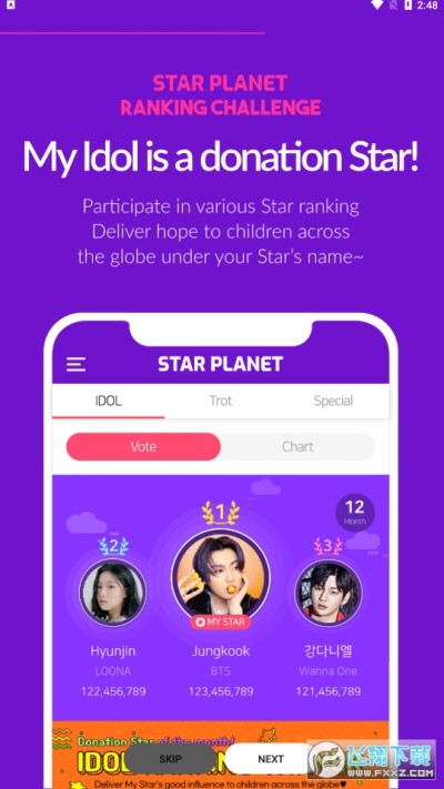 star planet是一款为偶像进行排行榜的平台,支持我最喜欢的偶像,并以我的艺人名义捐款,TROT排行榜支持我最喜欢的 TROT 艺术家,并以我的艺术家的名义捐款,特别排名,庆祝艺人生日、出道、回归周年,并以艺人名义捐款。