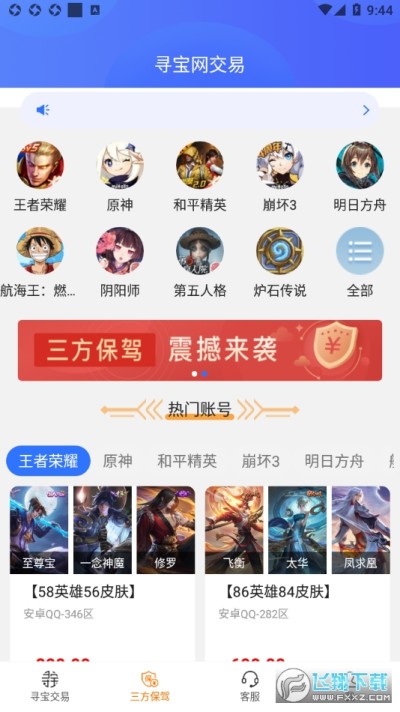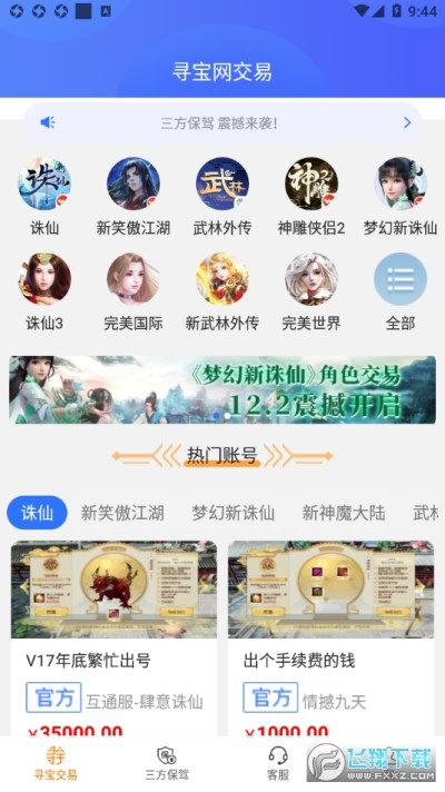 寻宝天行是一款完美世界官方推出的手游交易平台,这里有着各种完美世界游戏的商品,大家可以选择自己喜欢的游戏,看看有没有自己需要的道具商品,轻松完成交易,有兴趣的玩家可以下载看看。