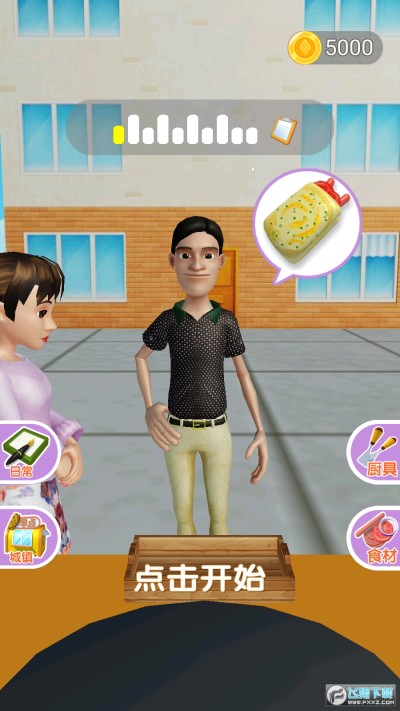 玩家可以不断的摊煎饼卖给顾客们当做早餐和晚餐。游戏初始会给玩家一定的金币;