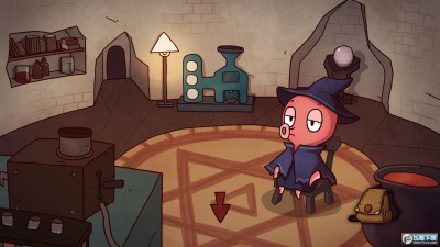 厨房桌子上有一个(大白萝卜),将萝卜放入菜地中,地鼠就无处可藏任由你打啦~地鼠会交出一颗星星钥匙,可以打开卧室的箱子,得到一把(铁锹)