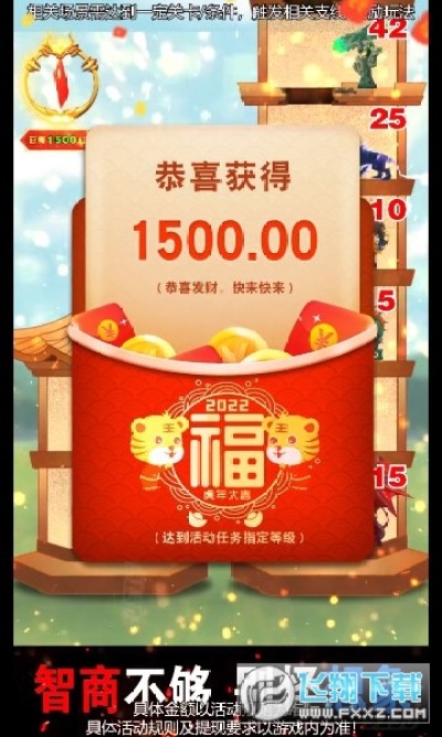3、3分钟上手,5分钟上头,闯关获得红包奖励。