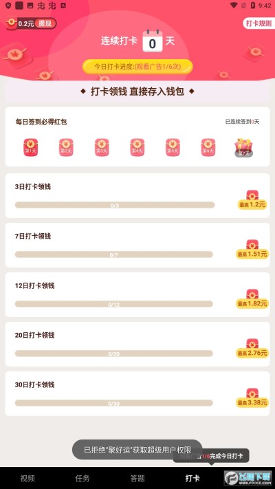 聚好运app是一款最新的短视频赚钱软件,软件中刷一刷短视频就能赚红包奖励,除了看视频之外,还可以看视频广告赚红包,软件最低0.3元低门槛免费提现,点击立即提现秒到账!对软件感兴趣的话不妨点击下载试试!