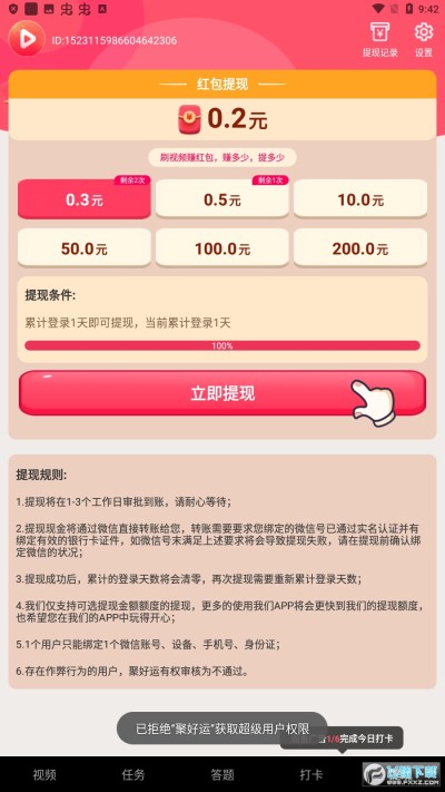 【提取秒到账】看视频就送红包,最低0.3元就可以提取到微信,让您提取不用等,轻松赚大钱。