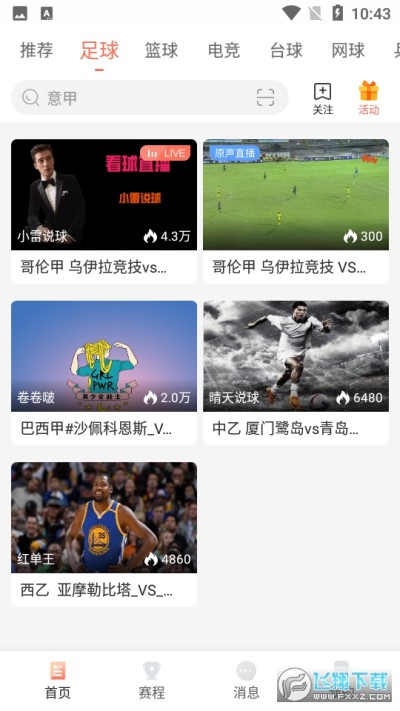 看球直播免费看球是款相当简单方便的手机看起软件,在这里我们可以看到各种最新球赛和推荐。方便的功能和超多选择也是和我们在家与朋友分享和看球,想要免费试试这类工具的朋友不妨速速下载吧!