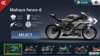 3.摩托骑士中超多的赛车自由的去解锁使用;