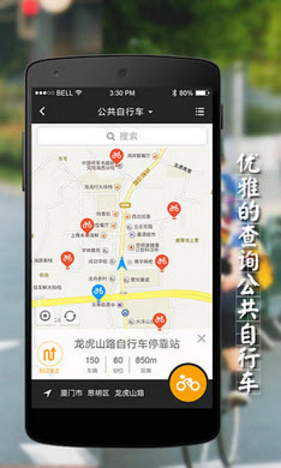 -便捷、优雅地为你指引周边公共自行车的借/还车服务点位置,实时查询服务点的车/车位数量。