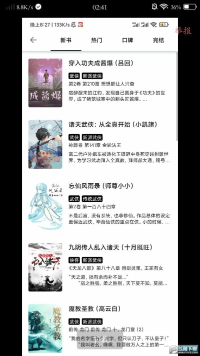 1.新颖的资源非常丰富,涉及的小活内容广发,幻想、浪漫、武术、科幻小说、军事等等全部都有。