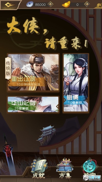 3、可以无限重来,再战精彩的江湖,10分钟一局,让你体验江湖的纷争。