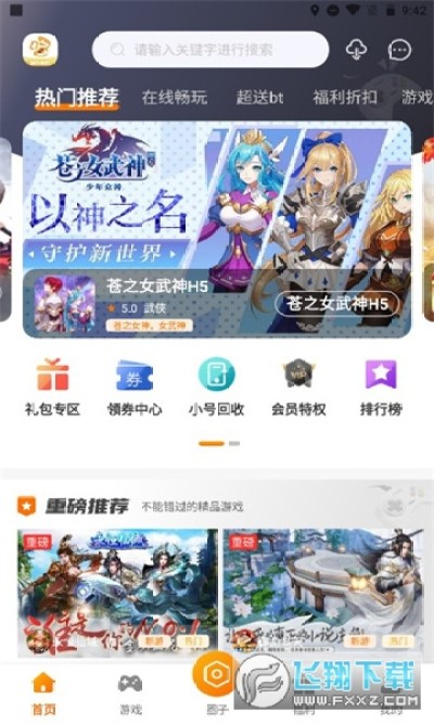 2、大型游戏:集合全网公益服手游,包括BT版、满VIP版、GM版