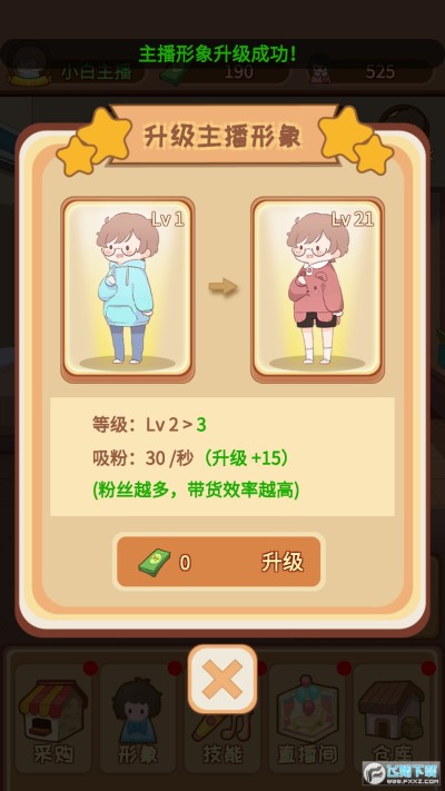 2.升级直播间和形象:玩家通过升级直播间和角色形象提高吸引粉丝的能力。升级过程中,直播间和玩家的形象外观也会随之发生变化。