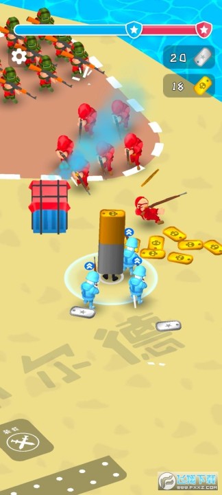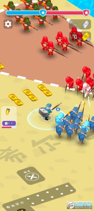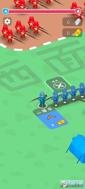 1、一个非常有趣的战争主题。在路上升级士兵是最重要的成长方式。