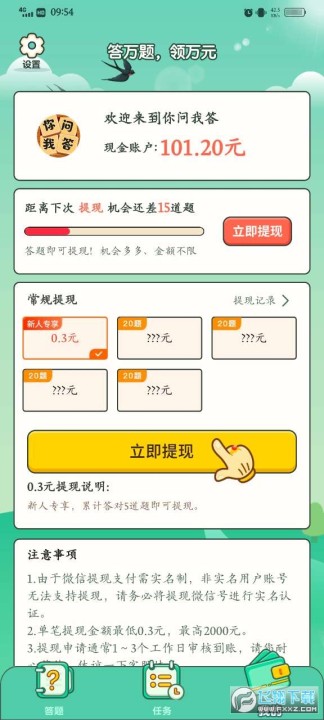 你问我答红包版是一款答题闯关类赚钱小游戏。积少成多,提现一波!玩手机就能赚零花钱,简单的知识问答轻松闯关,完成任务还有更多丰厚奖励等你领取,感兴趣的小伙伴们快来下载游戏体验吧!