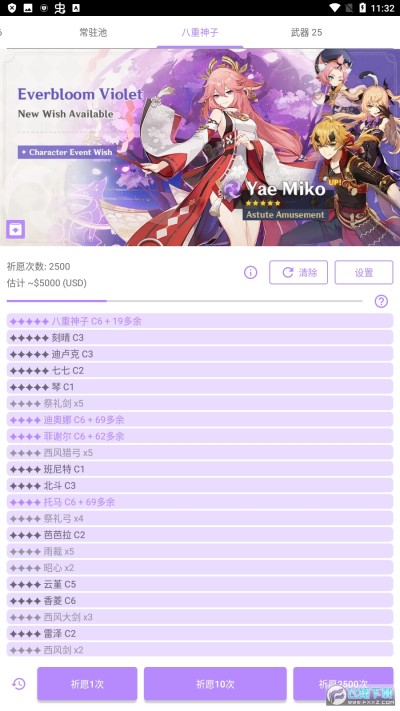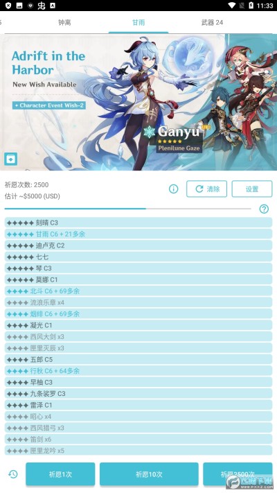 1、在这个游戏中可以模拟各个卡池的十连抽卡,比如常规池以及一些角色的up池(其中还包含了武器),可以足够大家抽个爽了。