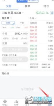 3.选择合约类型:选交割合约----点击红色圈内---当周合约。(短线操作建议当周合约,长期操作建议季度合约,季度合约交割时间充裕,可以短期也可以长期持有)选择币种:建议主流币种,小币种其交易深度不足。
