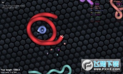 在进行线上对战时,玩家操作自己的蛇蛇,吞噬“能量球”使自己不断变强。让自己的蛇蛇变得更长更粗无疑会让你更轻松的消灭掉弱小的对手。虽然玩法简单易懂,但是不乏智谋的比拼。在游戏中,如何使用盘踞,拦截加速等技巧是取得胜利的重中之重!