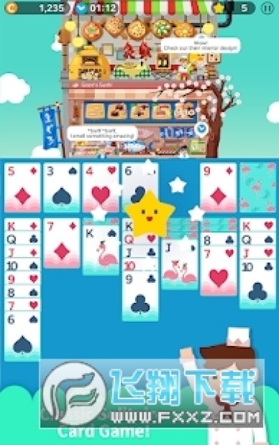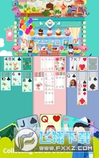 《卡牌烹饪塔》的主打玩法就是《纸牌》。游戏时一共有7排的卡牌堆栈等待着你来挑战,而你需要做的事情就是将其以拖拽的方式按照由K到A的顺序进行排列,直至将4套卡牌都分别摆放到地基上面即可挑战成功。其中,纸牌的颜色必须是交替的,也就是说红色的纸牌需要放在黑色的纸牌上面。否则就是无效的移牌。另外,假如你能够连续得分的话,还将获得星星作为奖励,然后可以在卡牌商店里面购买相应的卡牌了。据说,不同的卡牌具有不同的效果哟。