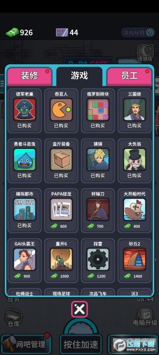 3、不断升级购买设施,购买更多有趣的游戏。扩建网吧,打造豪华包间。