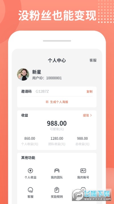 创建团队:创建自己的团队,团队成员也会给你带来部分收益,实现短视频商业价值的最大化。