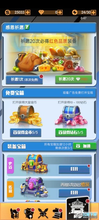 1、解开各种弓箭,用更多的大怪物射击,最终赢得保卫世界和平的胜利;