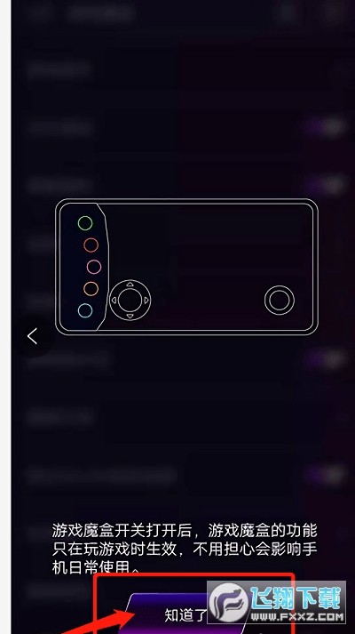 1、只要在上滑菜单单点按钮就能开启/关闭游戏魔盒总开关,而长按则可以进入游戏魔盒。