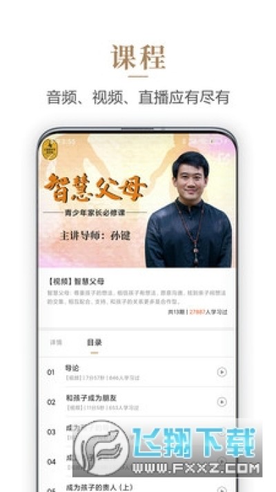 课程内容全面,覆盖儒商国学、企业管理者、家庭父母、青少年、女企业家。不管您当前是什么角色,在APP中都有适合您学习的知识;