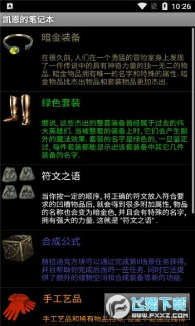 暗黑2凯恩的笔记本app是一款由暗黑2德鲁伊忠实粉丝编写开发的游戏攻略软件。里面包含了海量的各种装备数据、资料手册、角色技能等,有着非常详细的分类。用户完全可以根据自己的需要去进行查询的,也是极为方便的。