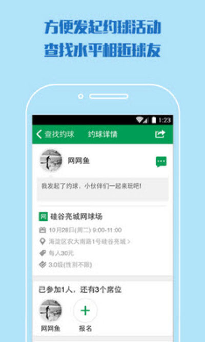 -订场后可发布约球信息,找到水平相近,能相互促进的球友