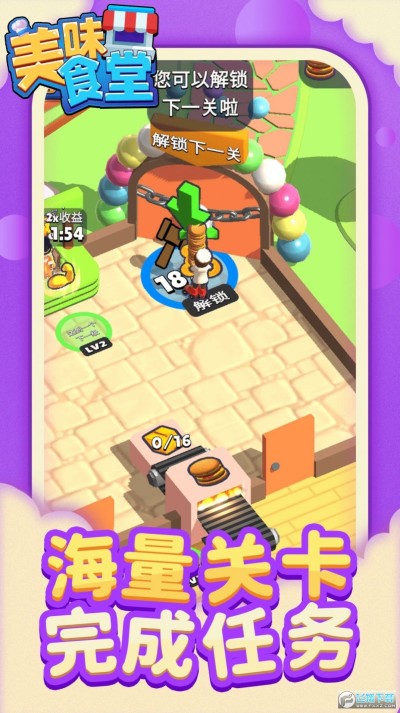 2、各种好玩的游戏等你来解锁。合理使用资金,让食堂运转顺畅,各种商业游戏等你解锁。