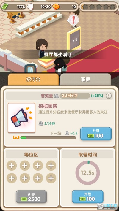 5.在闲置模式下经营您的餐厅并赚取更多游戏币。