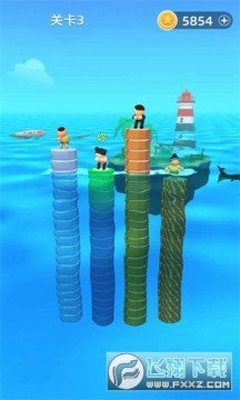 3、让你的角色快速跳跃,躲避下方海水,小心被海水淹没从而失败,用你的实力让角色快速获胜;
