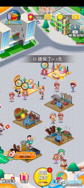 小吃街大亨红包多多是一款模拟经营类赚钱小游戏,承包一条小吃街,开设各种美食小店,招聘员工前来帮忙,吸引顾客消费,完成任务即可获得丰厚的红包,无门槛提现秒到账,感兴趣的小伙伴们快来下载游戏试试吧!