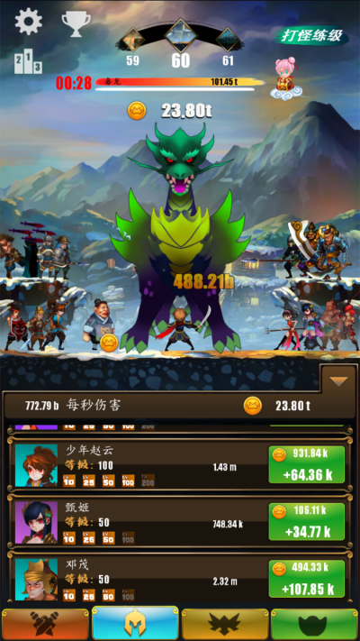 休闲小游戏,玩家只要点点点就能轻松,专为春节返乡的人们无聊消磨时间,在家乡没有网络环境下设计的一款单机策略挂机rpg游戏,没有网络也可以挂机的小游戏,让你的归乡途中不再寂寞。
